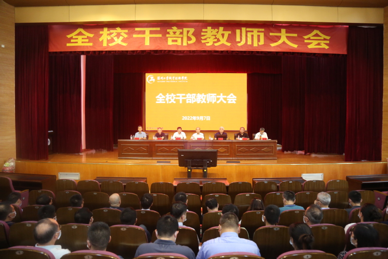 全体副科级以上干部、党支部书记、教研室主任、专业带头人、各级人大代表、政协委员,高级职称、民主党派等教师代表、学生代表参加了会议。